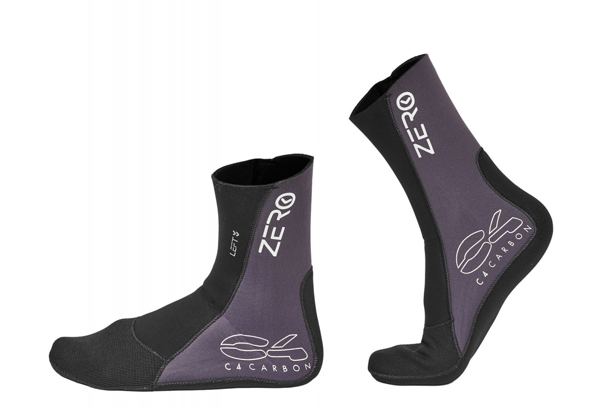 Носки C4 ZERO анатомические и предназначены для правой и левой ноги. Они изготовлены из эластичного неопрена SHEICO L. Снаружи и внутри носки покрыты нейлоном. Все швы проклеены специальным неопреновым клеем. Наружные швы выполнены двухниточным плетением.